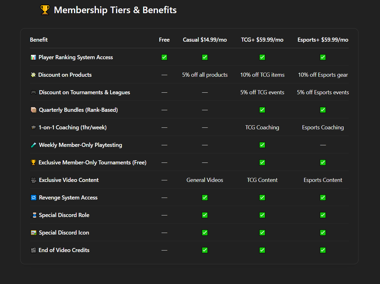 By joining our membership program, you unlock the opportunity to earn exciting rewards as you play and ascend our ranked ladder. The further you climb, the more impressive prizes await, tailored to the game you and your teams engage in. Your skills and dedication deserve recognition, and we are committed to showing our appreciation for your hard work. As you face challenges and improve your rankings, you’ll not only experience the thrill of competition but also enjoy the benefits that come with your achievements. Let your passion for the game translate into rewards that enhance your gaming experience!